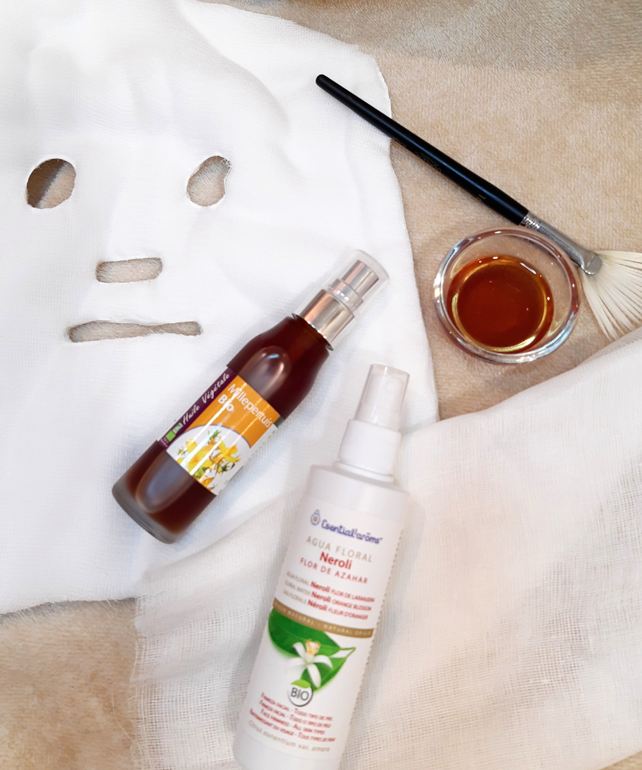 Si teniu qui us ajudi serà molt més senzill, posant primer la gassa molla de l’aigua de nerolí a la cara i amb un pinzell que ens pintin l’oli per tota la gassa.
